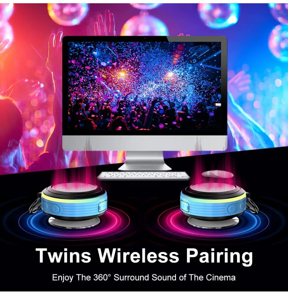 Special FeatureIPX7 Waterproof, LED light show, 3D Crystal Sound & Bass, Built in HD Mic, FM Radio, with Suction Cup & Hook, Bluetooth 5.0, HandfreeSee more