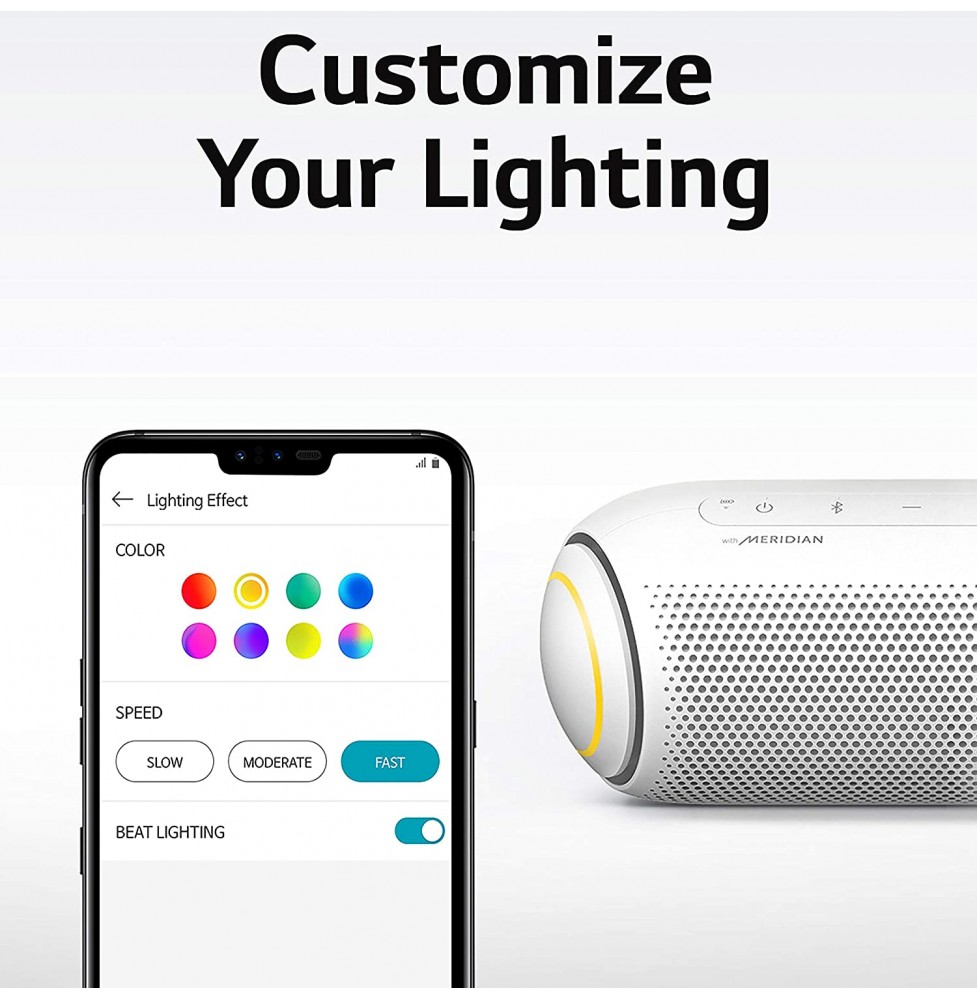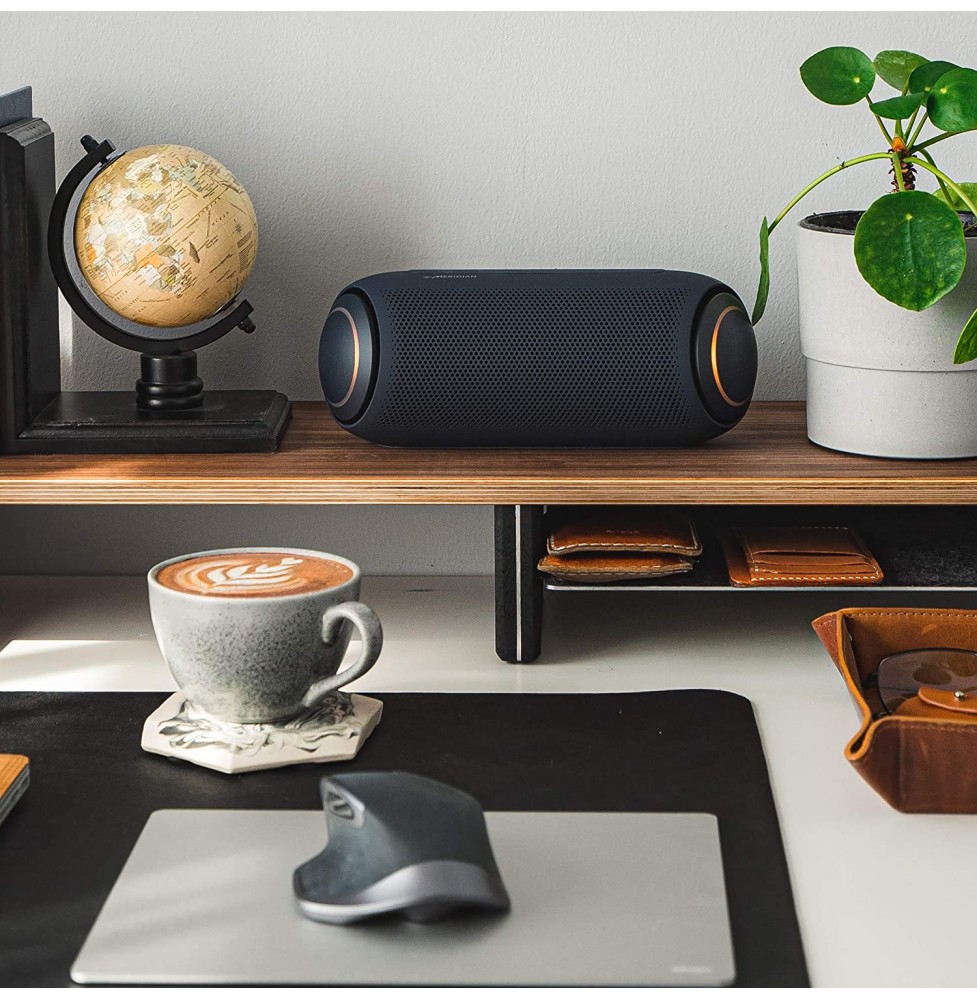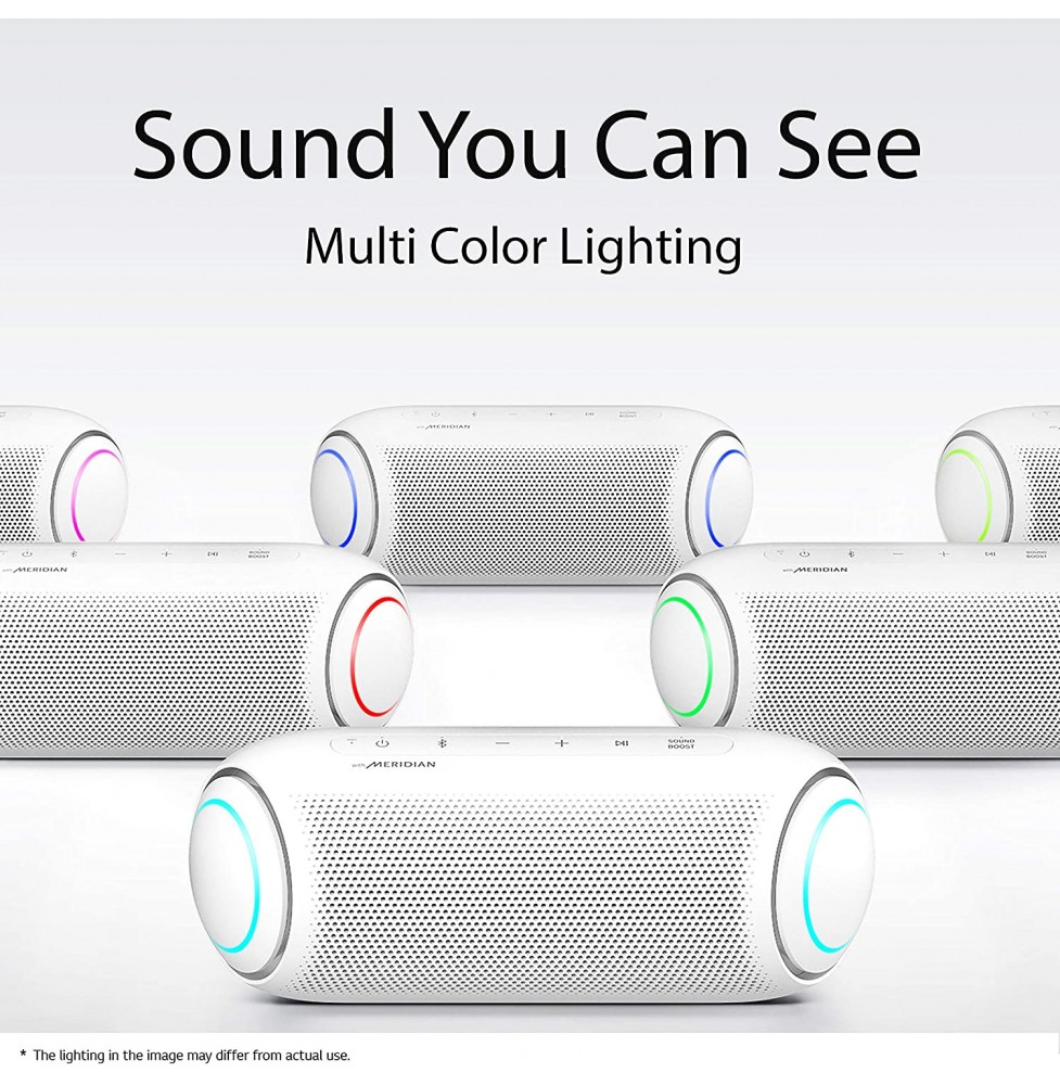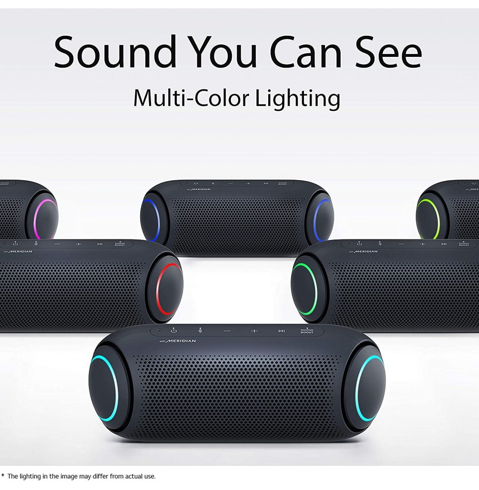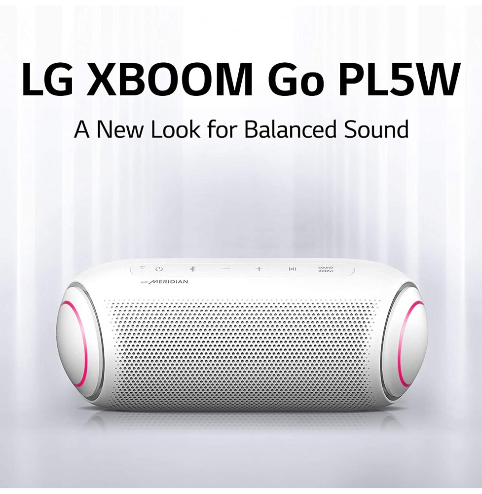 LG's PL7, XBOOM Go portable Bluetooth speaker offers long-lasting rechargeable battery, for up to 18 hours of playback. The splash-resistant PL5 with Meridian Audio technology for richer bass and clearer vocals adds LED lights add club-style excitement. Battery life will vary with use, settings, and environmental conditions.